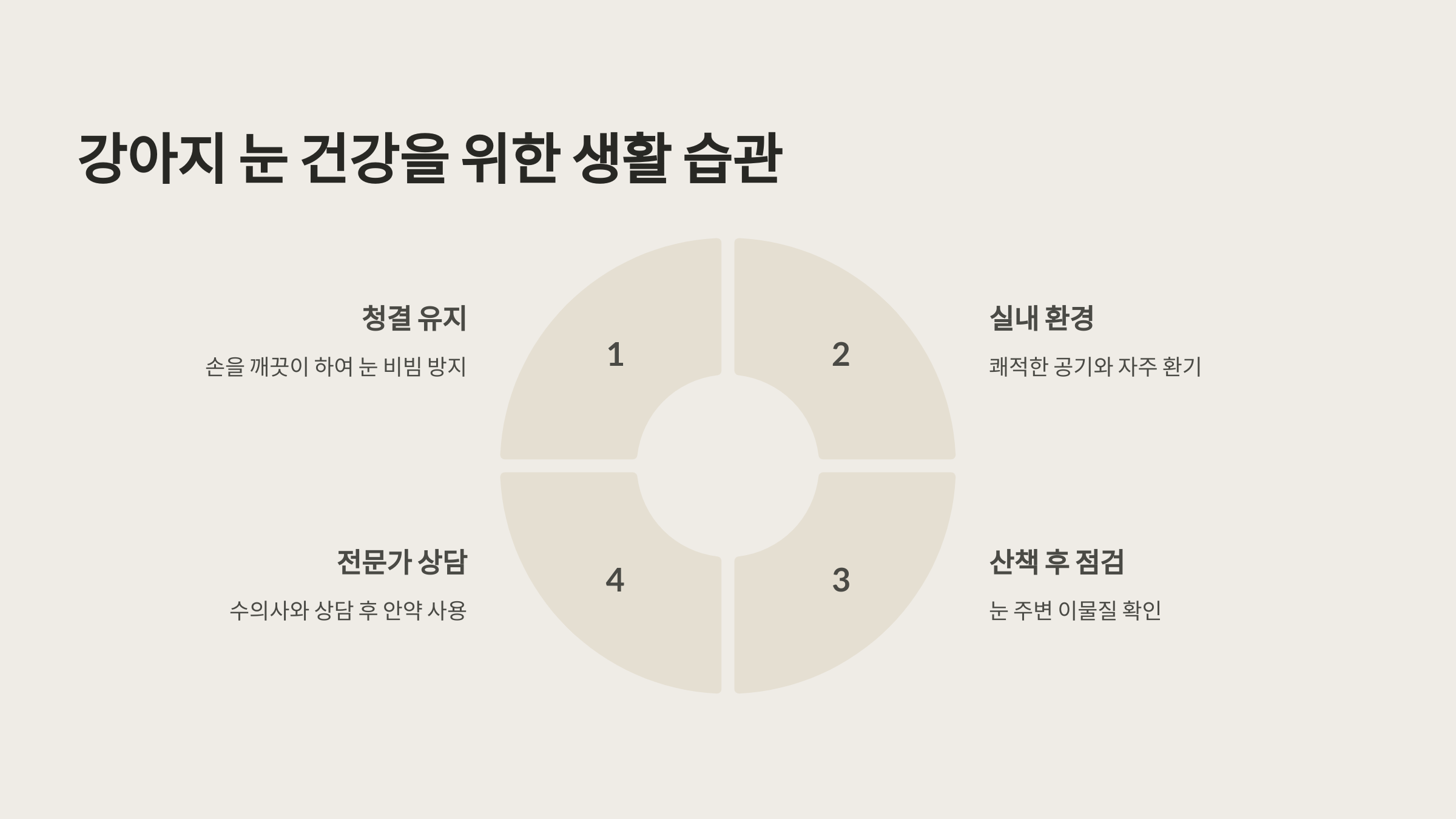 - 강아지가 눈을 비비지 않도록 손을 깨끗이 유지한다.