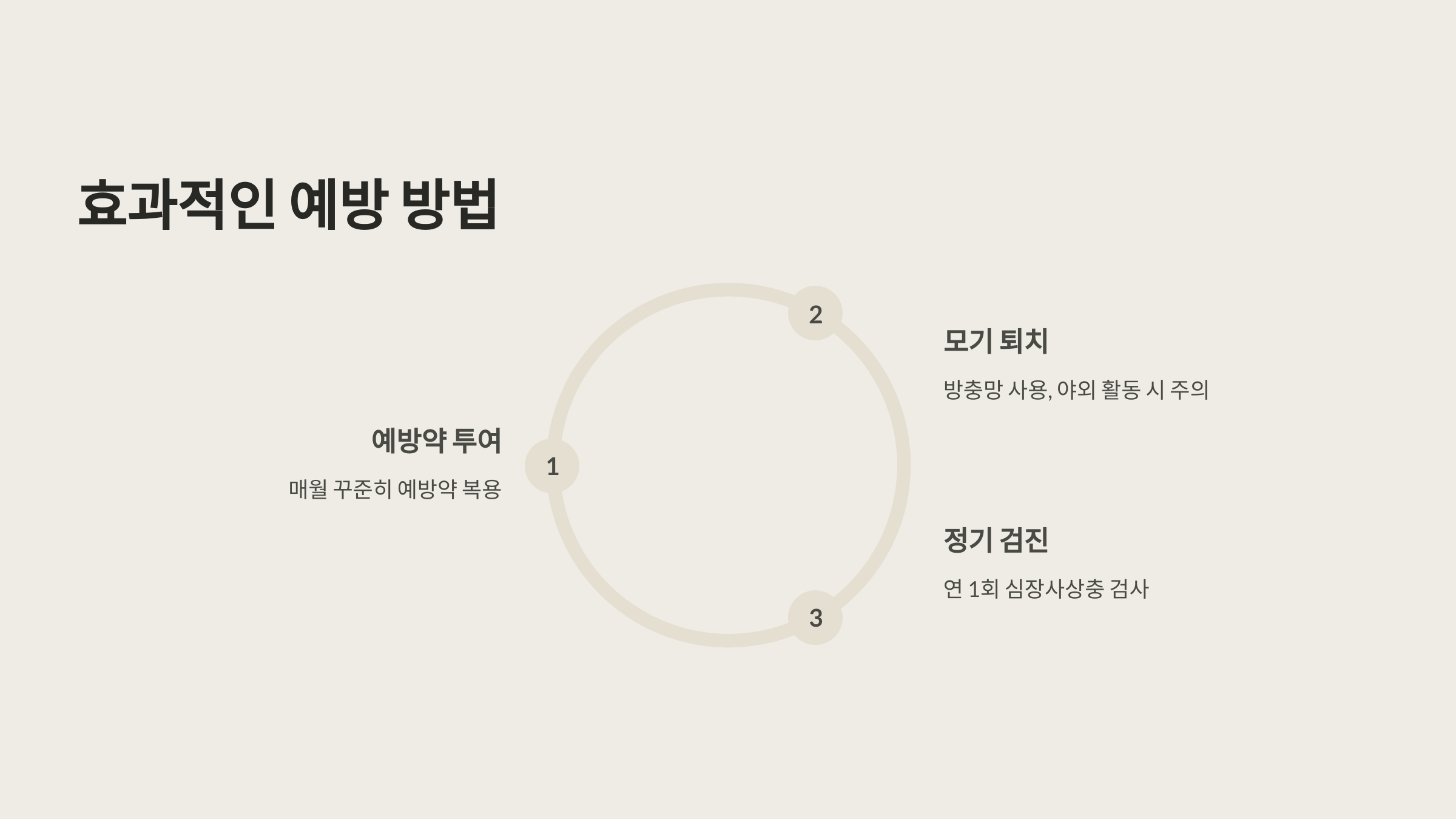 심장사상충은 예방만 잘하면 100% 막을 수 있는 질병입니다. 다음과 같은 예방 방법을 실천해야 합니다.