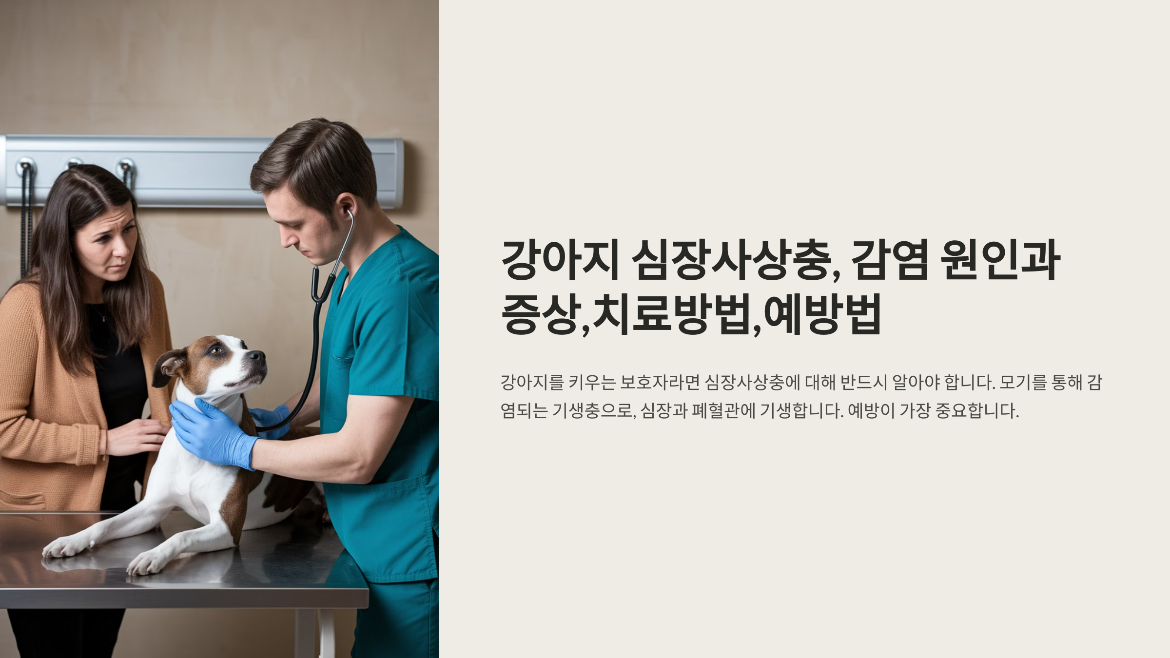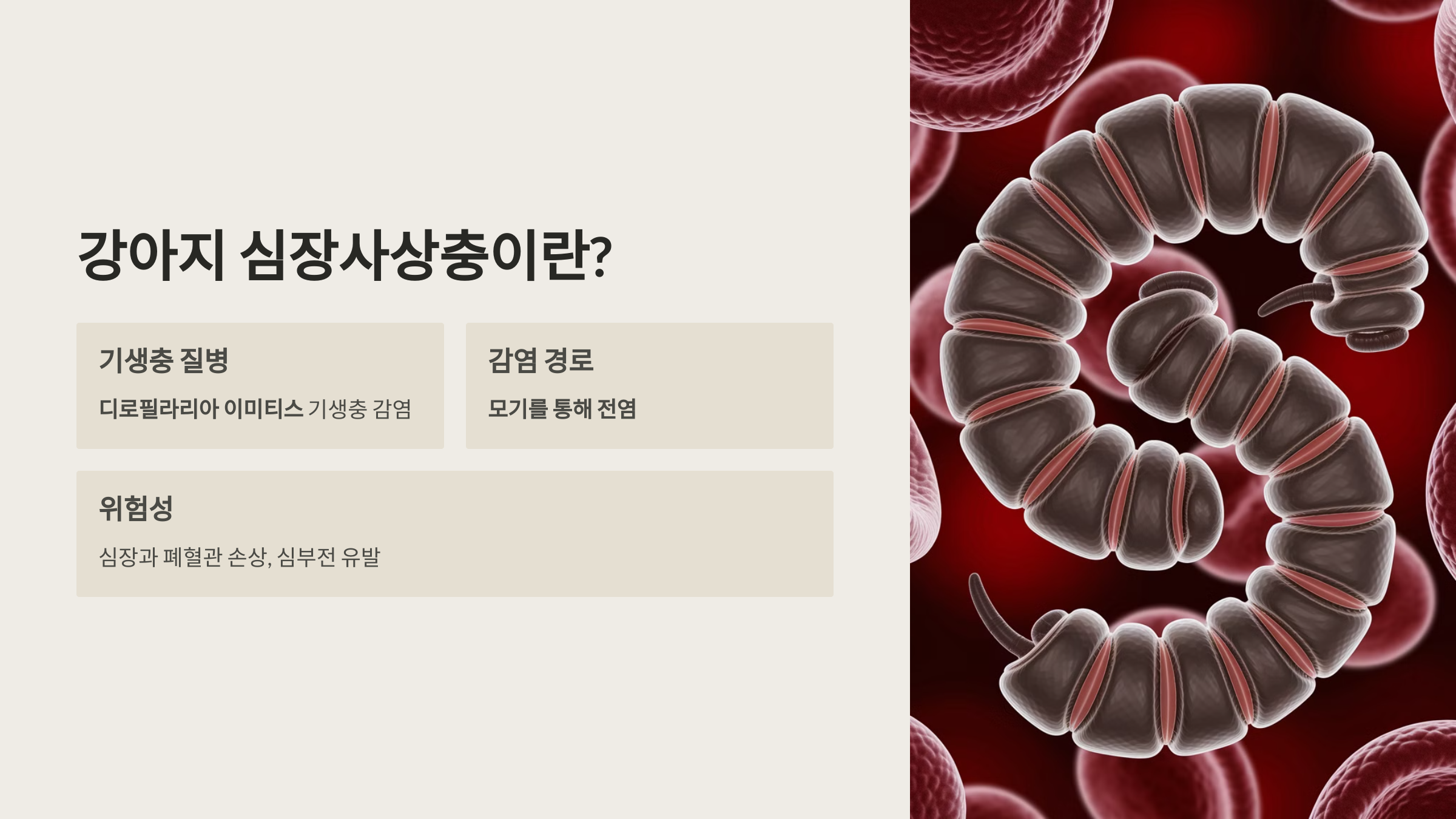 강아지를 키우는 보호자라면 심장사상충에 대해 반드시 알아야 합니다. 심장사상충은 모기를 통해 감염되는 기생충으로, 강아지의 심장과 폐혈관에 기생하면서 심각한 건강 문제를 일으킵니다. 감염되면 치료가 어렵고 위험성이 크기 때문에, 미리 예방하는 것이 가장 중요합니다. 이번 글에서는 강아지 심장사상충의 감염 원인과 증상, 치료 방법, 예방책 등을 자세히 알아보겠습니다.
