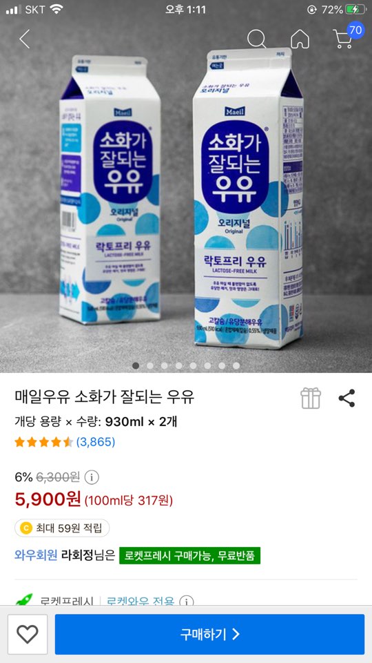 이름도 정직한 소화가 잘되는 우유 ㅎㅎ