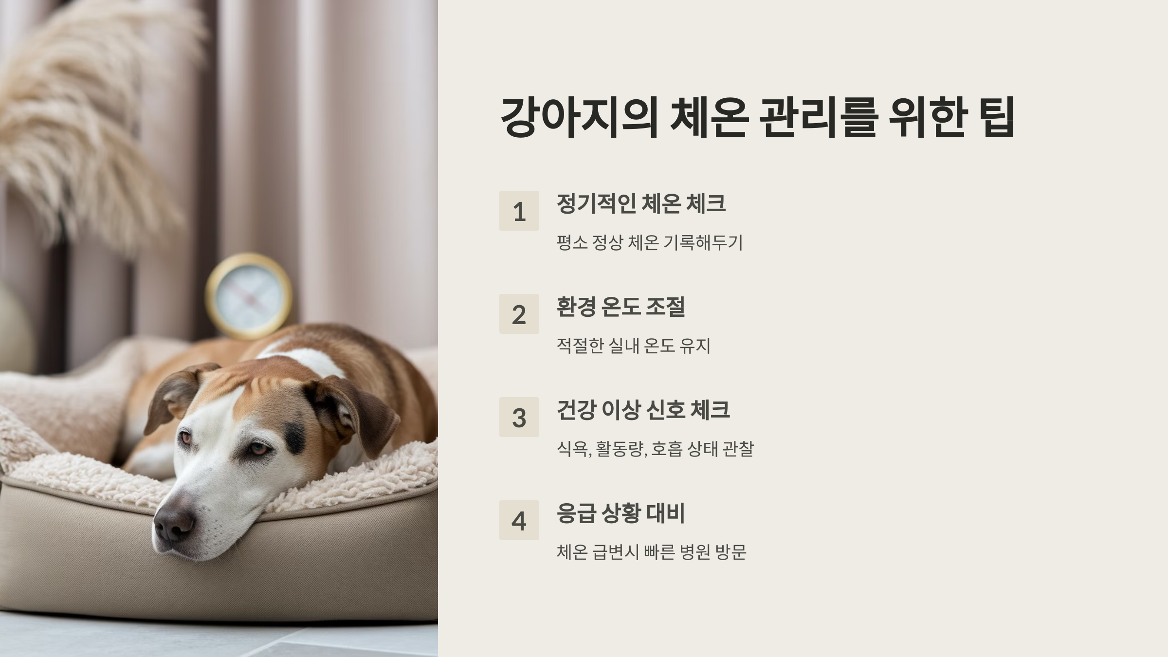 강아지의 체온을 정기적으로 체크하면 건강을 유지하는 데 큰 도움이 됩니다. 여러분의 반려견은 평소 체온이 몇 도인가요? 혹시 체온 관리에 대한 고민이나 경험이 있다면 댓글로 공유해 주세요!