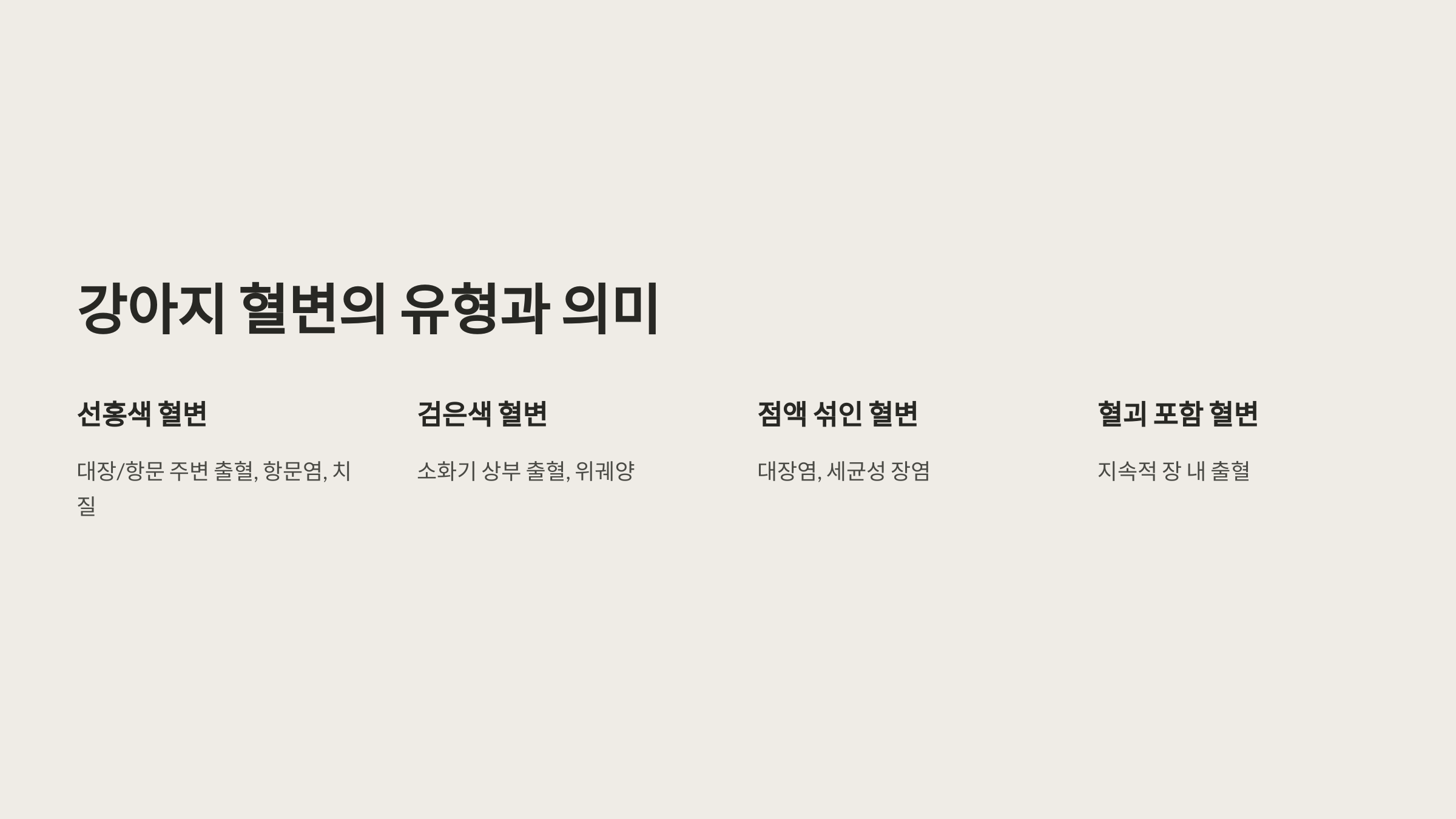 - 혈변과 함께 구토, 무기력증, 탈수 증상이 나타날 때